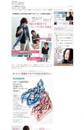 女性ファッション誌『STORY』は、2017年2月号において、イタリアのストールメーカー「Ottotredici」×STORY人気スタイリスト川田亜貴子さんとのコラボストールを掲載。あわせて、STORY公式サイト「storyweb」でも川田さん直伝のストールの巻き方講座、全6パターンを公開いたしました。誌面上では細部まで伝わりづらい部分も、動画で分かりやすく川田さんが解説していますので、ぜひご覧ください。さらに、ストール購入先着50名様にはオリジナルエコバッグをプレゼントします。詳しくはこちらまで。
