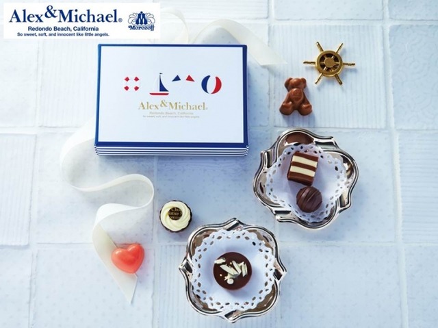 上質でキュートなマリンデザインのボックスに、テディベアやハートの形のチョコレート、小粒のトリュフ、マンディアンなどを彩りよくアソート。高級感あふれる大人可愛いギフトです。