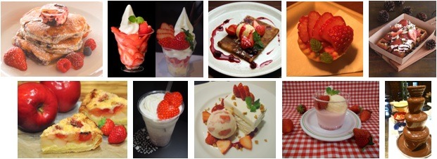 無料サンプリングのほか、本イベント限定の「とちおとめ」・「スカイベリー」を使用した、スイーツの提供を横浜赤レンガ倉庫内のbills(ビルズ)など、10店舗にて行います。(※詳細なメニュー等は下記に記載)