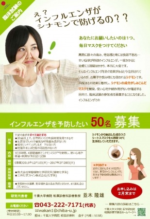 千葉大学(学長 徳久剛史)(研究代表者 大学院医学研究院 和漢診療学 並木隆雄 准教授)は、インフルエンザの発症を未然に防ぐ効果があると注目されているシナモンを使用したマスクの基本設計を完了し、このたび実用化にめどをつけました。
