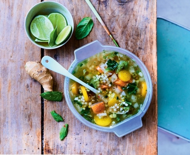 ココナッツミルク、ジンジャー、コリアンダーの風味をいかしたエキゾチックな野菜スープ。