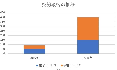 「2015年8月よりサービスを開始」弊社のご契約頂いたお客様の多くは、独身世帯や共働き世帯が多くなっており不在宅のサービスが前年対比の約5倍となっております。