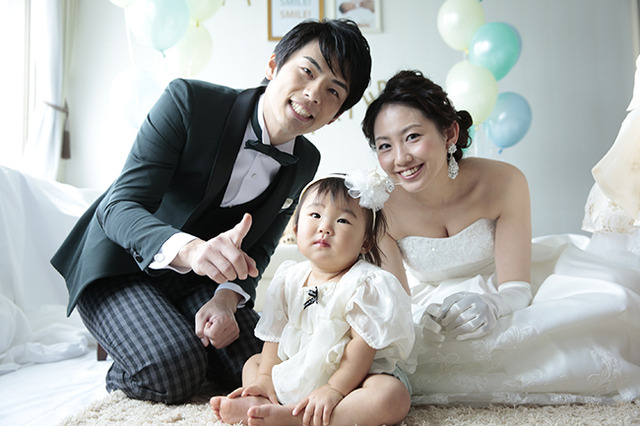 「1st Birthdayプラン」は、現在妊娠中でウェディングを悩まれている方への新しい提案として、また、ウエディングを諦めた事に心残りを感じているご夫婦が前向きに考えられるきっかけとなるようにと作られました。お子様の「1歳」の誕生日という大切なイベントにあわせ、パパママの「1歳」、 そして家族みんなの「1歳」をお祝いするウエディングプランです。