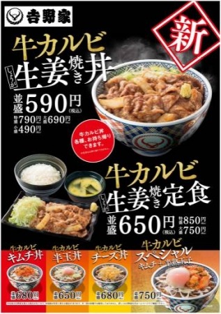 吉野家ならではの「牛カルビ生姜焼き丼」「牛カルビ生姜焼き定食」どうぞご賞味ください。