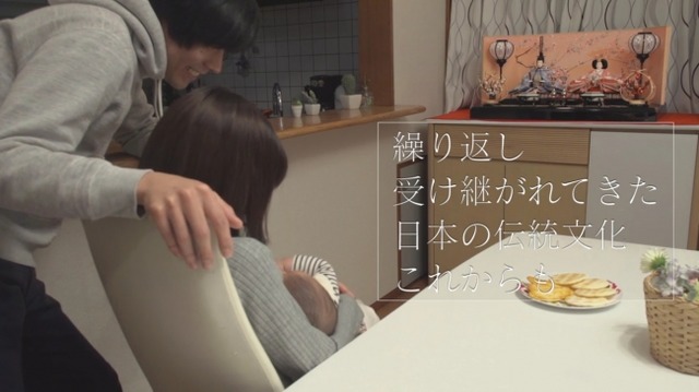 ショートムービーのテーマは“受け継がれる日本の伝統文化”。物語は2人の同い年の赤ちゃんの出会いから始まります。お互いに目元のホクロが印象的な元気な赤ちゃんでした。それぞれ健やかに成長し、女の子はひな人形を、男の子は五月人形を飾ります。同時に、「28years→23years→18years→・・・」と、年月のカウントダウンは進みます。
