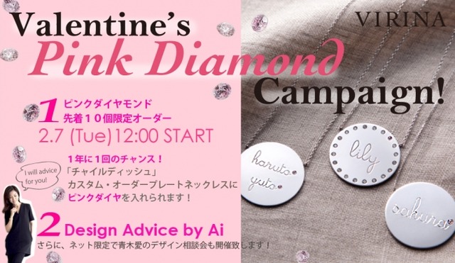 「チャイルディッシュ」カスタム・オーダープレートネックレスに希少価値の高いピンクダイヤモンドを入れられる、年に一度のチャンス! ヴァレンタイン期間限定、今だけのキャンペーンを2017年2月7日(火)12時より開催中です。