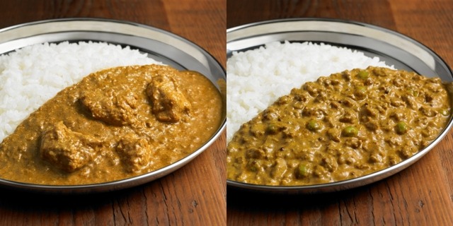 「チキンシャクティ」はローストココナッツとポピーシードのシャキシャキとした食感とこうばしい香りが特長で、ココナッツソースにタマリンドの酸味が加わったマイルドすぎないバランスのとれたソースになっています。「キーママタル」は鶏挽肉にほっくりとしたグリーンピースの組み合わせで、トマトの酸味にココナッツのまろやかさが調和し、鶏挽肉の旨味を引き出しています。