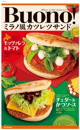 ファーストキッチン株式会社(本社:東京都新宿区、代表取締役社長:紫関 修)は、2017年2月9日(木)より、高級感のあるトマト&モッツァレラチーズを使用した「ミラノ風カツレツサンド(モッツァレラ&トマト)」(460円/税込)と、定番のかつソースを使用した「ミラノ風カツレツサンド(チェダー&かつソース)」(390円/税込)の2種を、ファーストキッチン全店で発売いたします。