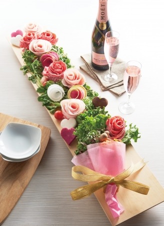 そんなお野菜とお肉のプロがバレンタインデーに特別なプレートをご用意させていただきました。テーブルを埋め尽くすかのような、全長90cmのお肉と国産野菜の肉ブーケならぬプレート。このプレートに乾杯用シャンパンをお付けし抽選で5組様に特別ランチへご招待をさせていただきます。是非特別なコースを大切な方と囲んで頂き日ごろの感謝をお伝えする時間をお過ごしください。