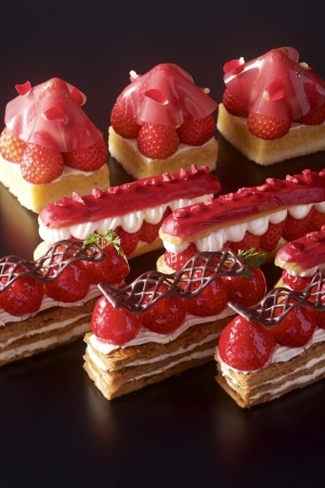 苺のミルフィーユ、苺とミルクチョコのムース、