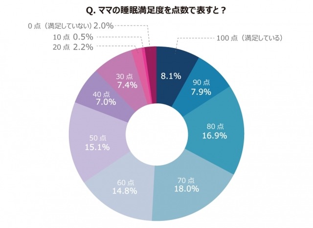●ママ達の睡眠満足度、平均は63.4点 寝がえりうてず、起床時に体の痛みを訴えるママ達多数
