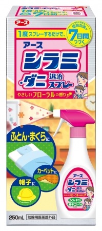 『 アース シラミ・ダニ退治スプレー 』 は、シラミ・ダニに優れた殺虫効果を発揮するだけではなく、寝具や衣服などに1度スプレーするだけで、シラミに対する駆除効果が約7日間つづきます。