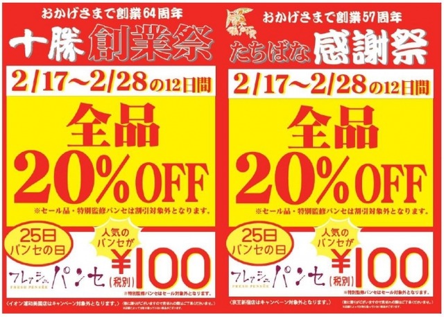 十勝甘納豆本舗は2017年2月をもちまして創業64周年を迎えます。これを記念しまして、2月17日(金)から28日(火)までの12日間、全品20%オフとなる「十勝創業祭」を開催いたします。また、十勝創業祭と連動して、別ブランドの菓心たちばなでは「たちばな感謝祭」として同内容の協賛セールを開催いたします。