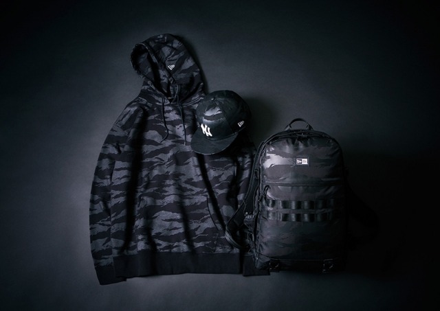 「ニューエラ」を代表するグラフィックのひとつであるTiger Stripe Camoをブラック・オン・ブラックにアレンジ、その新色が載せられたコレクションが登場する。ヘッドウェアを筆頭に、アパレルやバッグ、キッズモデルもラインナップされた本作は、異なる質感のコントラストで柄を表現することで、ブラックを基調としながらもダークな印象になり過ぎないようデザインされている。