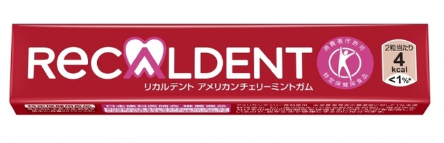 パッケージには、アメリカンチェリーをイメージしたビビットで深いルビー色を採用。白字の「ReCALDENT」が映えるデザインで店頭での視認性を強化しました。