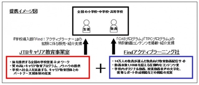 今回の両社の提携を通じ、JTBは『学校導入版「Find!アクティブラーナー」』の拡販に係る販売・紹介支援を行うことを通じ、全国の小学校・中学校・高等学校における「キャリア教育」「能動的学修者(アクティブラーナー)育成」の普及・促進に貢献してまいります。