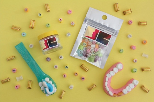 よく見たら金の差し歯が入った「入れ歯」キャンディ・金箔で金色に輝く持ち手の「歯ブラシ」キャンディ