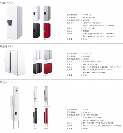 今回発表した「門柱ユニット」の特徴は、1.大型メール便2.宅配便3.書留郵便※の3種の配達受け取りを可能にし、加えて、日本郵便株式会社など配達業者との協力や、お客さまが任意に暗証番号を設定できる錠前(ワンタイムパスワード式)を採用することでいつでも好きな時に自宅から『対面せずに荷物の発送』ができるようになります。(※2017 年6 月以降には、日本郵便株式会社の『書留郵便物』を宅配ボックスへ配達することが可能となります。)