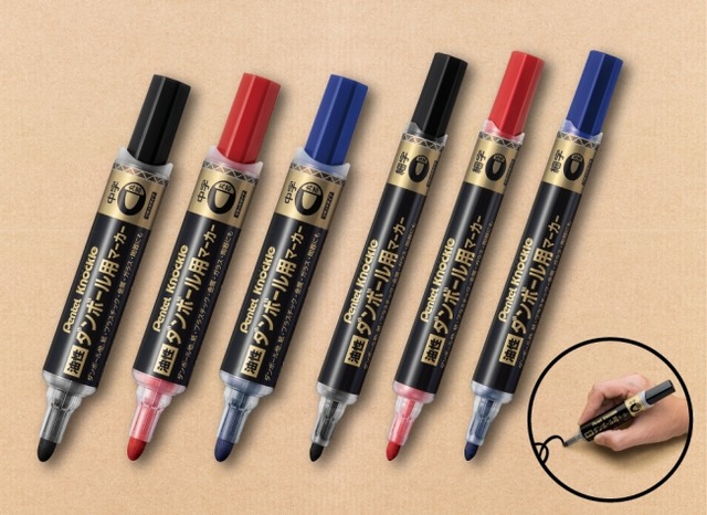 加えて、色の濃い生インキをたっぷりと入れることで、ダンボールへの筆記時に濃く、かすれず、長く書ける油性マーカー「ダンボール用マーカー」が誕生しました。ダンボールを頻繁に使用する引越しや梱包、倉庫作業など、手間のかかる作業中に筆跡がかすれるストレスを解消します。
