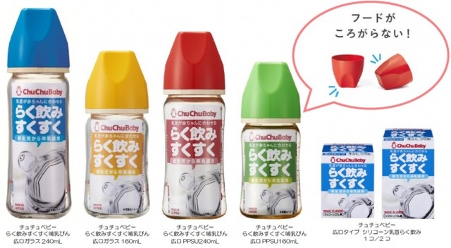 『チュチュベビー らく飲みすくすく哺乳びん』シリーズ哺乳びん4種、乳首2種 新発売