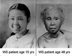 20歳代から白髪や禿髪を認め、30歳代頃から白内障や糖尿病を発症し、40歳代には動脈硬化性疾患や癌を発症し、50歳前後で亡くなることが多いとされています。