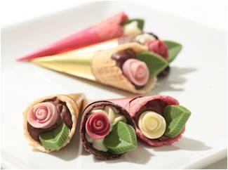 ブランドアイコンでもあるバラのショコラ、ガナッシュやワッフルコーンを組み合わせ、味わいや食感が織りなす絶妙なハーモニー。