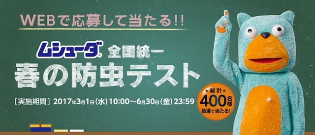エステー株式会社は、春の衣替えシーズンに防虫意識を喚起するため、3月1日から6月30日まで、衣類害虫の生態や防虫剤の正しい使い方に関するテストに参加して応募する「ムシューダ全国統一春の防虫テスト」キャンペーン http://www.st-campaign2017ss.com/ を実施します。