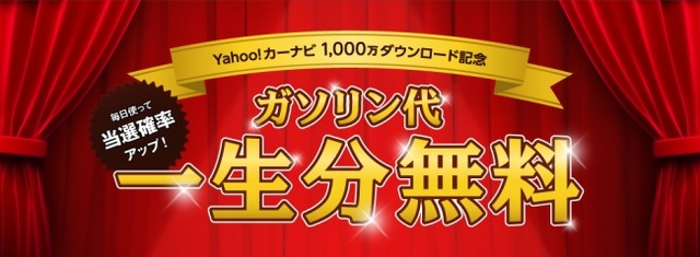 ■「Yahoo!カーナビ」 1,000万ダウンロード突破記念! 「ガソリン代一生分無料」プレゼントキャンペーンについて