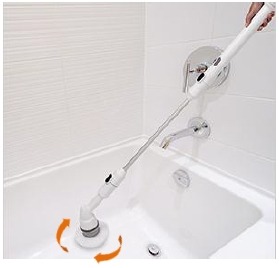 「ターボスクラブ」は、お風呂の床や天井を立ったままでラクにお掃除できる電動お掃除ブラシです。