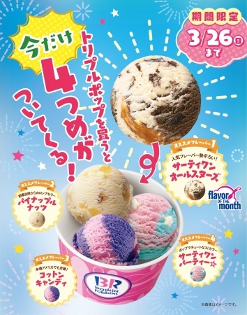 B‐R サーティワン アイスクリーム株式会社(所在:東京都品川区上大崎3-2-1目黒センタービル/代表取締役社長:渡辺 裕明:JASDAQ 2268)は、2017年3月4日(土)~3月26日(日)の期間、「3+1=4!(サーティワンフォー)」キャンペーンを実施いたします。