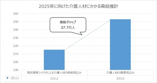 厚生労働省によると2025年には介護人材が37.7万人不足する見通しで、介護領域以外からの人材の呼び込みと、その教育体制の整備が急務となっています。