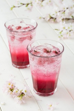 ・商品特徴:クランベリーシロップと蜜漬けの桜をソーダ水で割り、