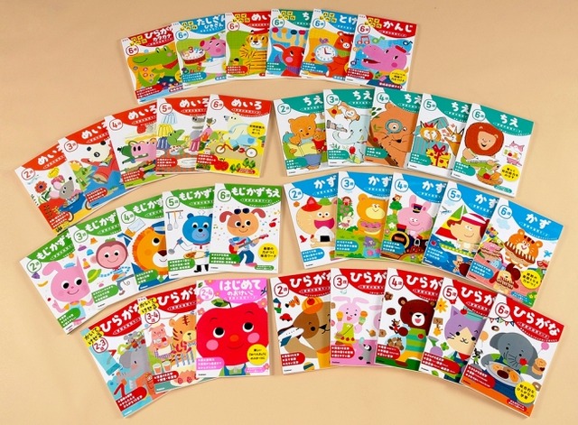 「ひらがな」「かず」などのメインジャンルは、2歳から6歳まで各年齢1冊ずつ取り揃えています。一年のうちにできることがどんどん増えていく幼児期にあわせて、一年刻みのレベル設定にしているので、子ども一人ひとりにぴったりなワークが見つかります。