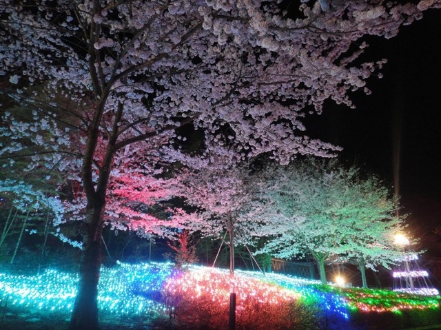 サンリオキャラクターパーク ハーモニーランド(大分県日出町)では、3月18日から4月9日までの土・日・祝日に「ハーモニーランド イルミネーション2016-17 5thシーズン」を開催します。桜とイルミネーションがコラボレーションする「夜桜ファンタジア」では、春の夜の幻想的な世界をお楽しみいただけます。