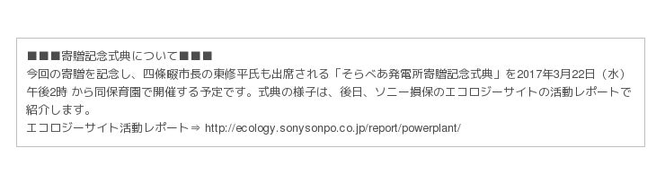 <「幼稚園にソーラー発電所を☆プログラム」の詳細⇒ http://ecology.sonysonpo.co.jp/solarbear/ >
