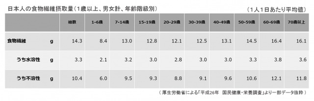 ※1:乳酸菌と共生関係にある酪酸菌・糖化菌などを独自の割合でブレンドし、善玉菌の活動をサポートするオリジナル配合のこと。※2:参照 平成26 年 国民健康・栄養調査結果 (一部データ抜粋)30-39歳食物繊維摂取量 合計12.5g(うち水溶性食物繊維:3.0g / 不溶性食物繊維:9.1g)