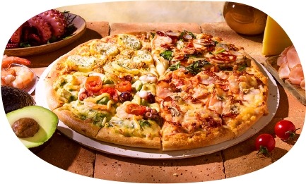 ●トッピング : アボカドとタコのサラダピザ、ハニーハムと芳醇ゴーダ、ラザニアーノ、BBQガーリックチキン