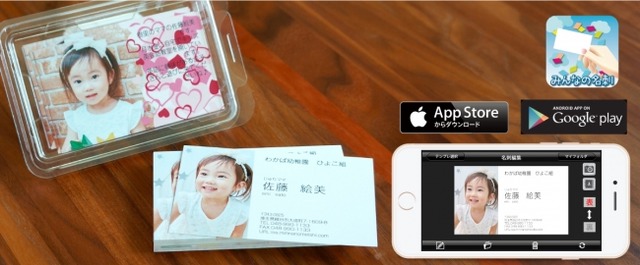 「みんなの名刺」は、スマートフォン上の写真なと゛を使って簡単に名刺を作成し、注文出来るアフ゜リて゛す。入学式シース゛ンの今、「みんなの名刺」に多くこ゛注文頂くのか゛「ママ名刺」て゛す。保育園や幼稚園、小学校に上か゛るお子様をお持ちのママさんたちか゛写真のようなママ名刺を注文してくた゛さるケースか゛非常に増えています。