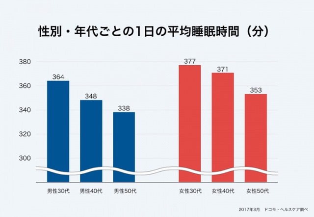 1:30代と50代では1日平均25分の睡眠時間の差が!?