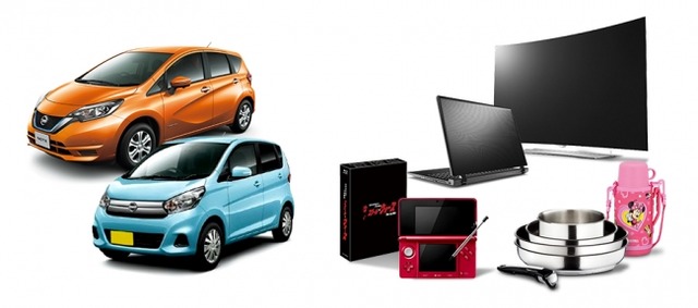 LGの4Kテレビやシャープ、日立、パナソニックの人気家電に加え、プラダやグッチ、バレンシアガを始めとする有名ブランドアイテムが満載