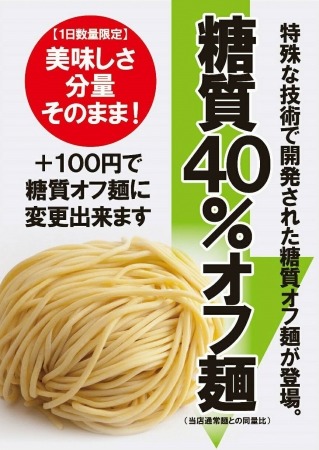 3月17日より、糖質量を通常の家系中太麺より40%カットした「糖質オフ麺」を町田商店系列【町田商店渋谷店】【代々木商店】【池袋商店】の3店舗で提供いたします。