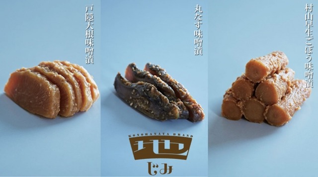 「戸隠大根味噌漬」「丸なす味噌漬」「村山早生ごぼう味噌漬」の3商品を販売開始いたします。信州の里山が育んだ土地の味。「地の素材」を「地のやり方」で楽しむ「地味な漬物」シリーズは、1年間で15商品程度を販売予定です。この第三弾の地味な味噌漬は、信州の米と大豆でつくった信州味噌に漬けました。昔ながらの技で仕上げた素朴な味噌漬は、味噌の香りの懐かしい味わい。真っ白なごはんと一緒に食べるとどんどん、お箸が進みます。