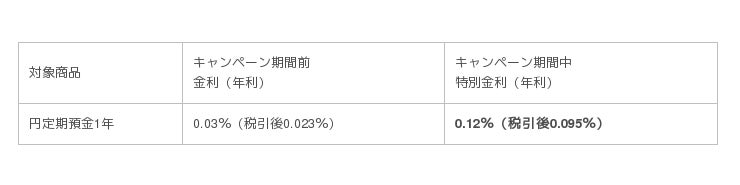 キャンペーン期間中、対象の円定期預金をお預入れいただいた方に、以下の特別金利を適用します。