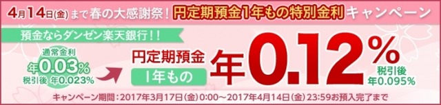 キャンペーンの詳細はこちら(https://www.rakuten-bank.co.jp/campaign/enteiki-20170317.html)をご覧ください。