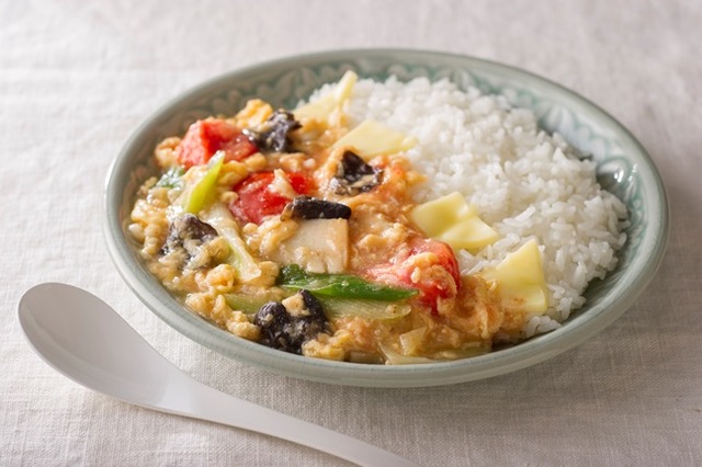 チーズとトマトを具材にしたフライパンひとつで作れるあんかけごはんです。