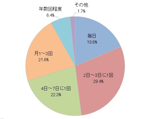 スマホの使用頻度は、「毎日」が18.6%、「2~3日に1回」が29.4%、「4~7日に1回」が22.3%でした。