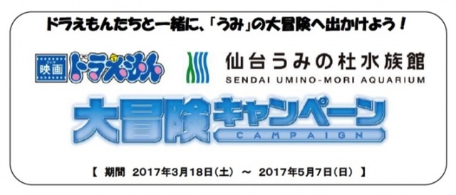 海と人、水と人との、新しいつながりを「うみだす」水族館、『仙台うみの杜水族館』では、2017年3月18日(土)より、大ヒット公開中の「映画ドラえもん のび太の南極カチコチ大冒険」とのタイアップ企画による『仙台うみの杜水族館「映画ドラえもん」大冒険キャンペーン』を行います。(*一部施策は3月25日(土)スタートとなります。)