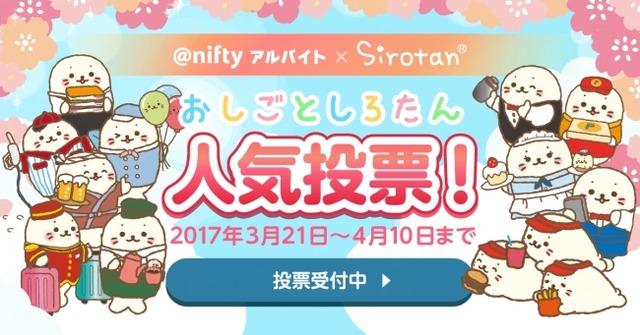 ○キャンペーン名称:@niftyアルバイト×Sirotan お仕事しろたん人気投票!