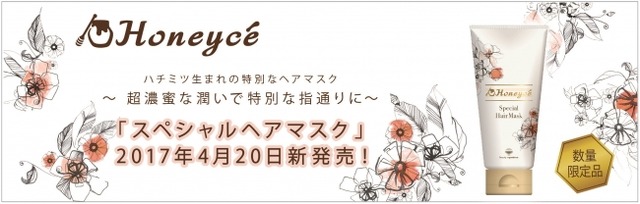 株式会社ビューティーエクスペリエンス(本社:東京都世田谷区・代表取締役社長:福井 敏浩)は、ハチミツを配合した至福のハニーヘアケアブランド「Honeycé(ハニーチェ)」から「スペシャルヘアマスク」を2017年4月20日より全国のドラッグストア等で数量限定にて順次新発売します。