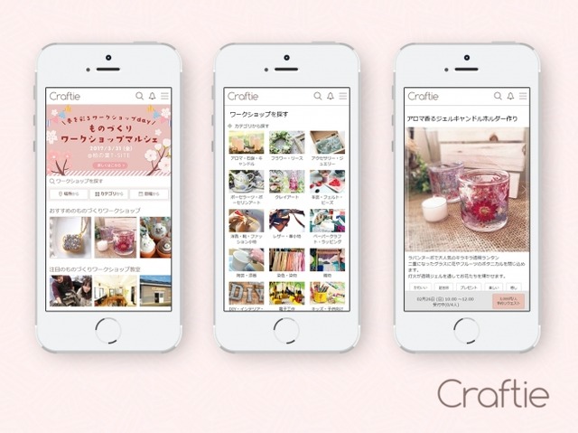 自分が作ったオリジナル作品で毎日の生活を彩りたい、そんな女性が最近増えています。季節の訪れをフラワーアレンジメントを通して感じたり、自宅のインテリアをDIYしたり、身に着けるアクセサリーを自分で作ったり、子供のためにおもちゃを手作りしたり。Craftieはそんなものづくりライフを応援するサービスです。人気ワークショップの中には結婚指輪職人と作るオリジナルアニバーサリーリングや、ヒマラヤ岩塩に色と香りをつけるバスソルト作り、海外で今話題のハンドウィービングで織るタペストリー制作、パステルを粉状にしてコットンになじませて描くパステルシャインアート、塗り絵感覚で楽しめる京都の友禅画体験等があり、日々の生活を楽しむワークショップがつまっています。